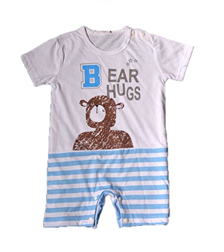 (ウォ2U)Woo2u 男の子 女の子 ベビー 子供 赤ちゃん 可愛い 動物 半袖 ボディスーツ スポーツ ショートパンツ シャツ チュニック ロンパース カバーオール ブルー 80