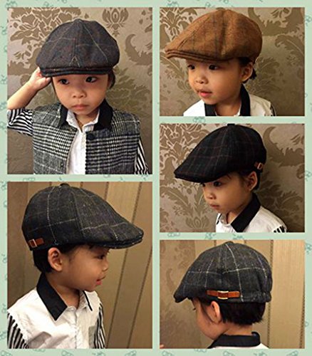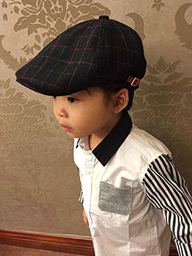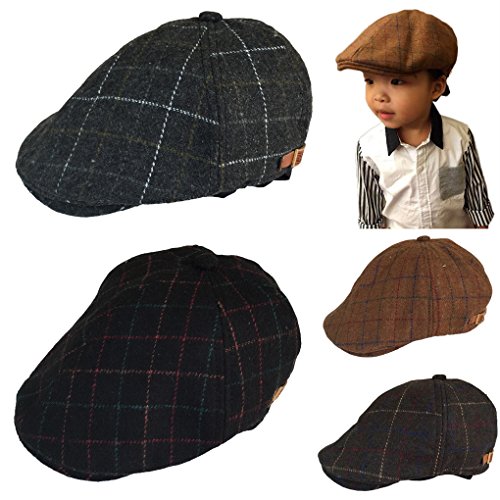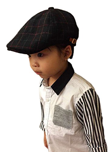 (ウォ2U)Woo2u 秋冬 子供 男の子 キッズ ラシャ 格子 アウトドア 日焼け防止 スポーツ サンバイザー 帽子 鳥打ち 運動キャップ 黒色