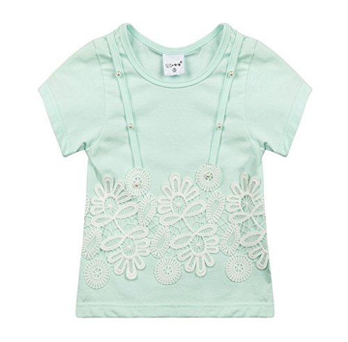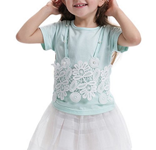 (ウォ2U)Woo2u ガールズ 女の子 春夏 半袖 レース 子供服 可愛い 花柄 半袖 スポーツ 通園 入園式 ブラウス 上着 チュニック トップス カジュアル Tシャツ 110