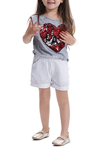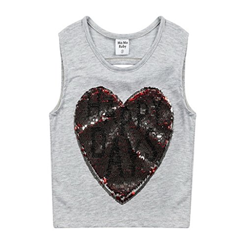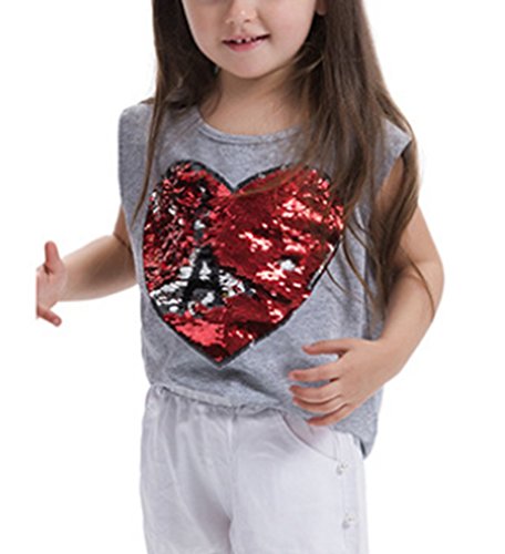 (ウォ2U)Woo2u 女の子 子供 ガールズ 春夏 可愛い ハート型 スパンコール スポーツ 通園 入園式 上着 トップス タンクトップ Tシャツ カジュアル ブラウス 130