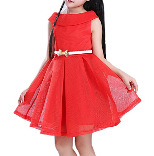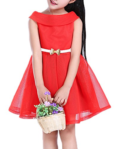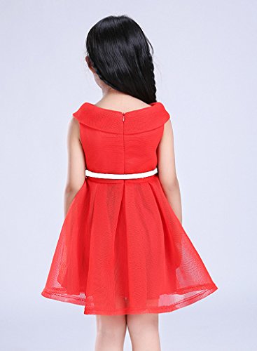(ウォ2U)Woo2u 女の子 キッズ 子供 春夏 可愛い 赤色 ノースリーブ 姫様 ひざ丈 カジュアル お呼ばれ 結婚式 演奏会 フォーマルドレス パーティー 三五七 通勤 ワンピース 洋服 3