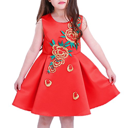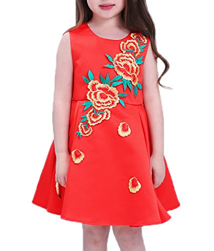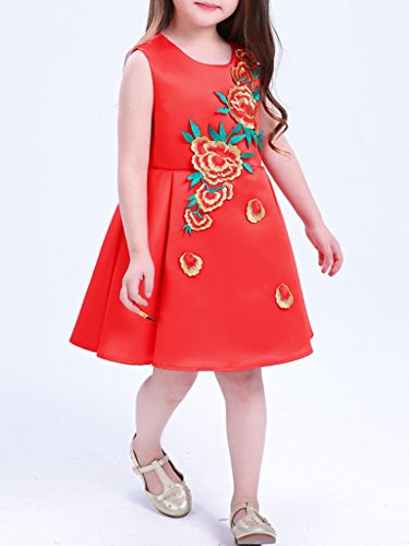 (ウォ2U)Woo2u 女の子 キッズ 子供洋服 春夏 ノースリーブ 赤色 花柄 ひざ丈 三五七 入学式 姫様 パーティー カジュアル フォーマルドレス 通勤 ワンピース お呼ばれ 7