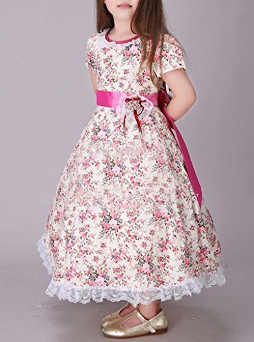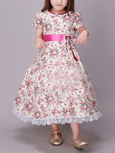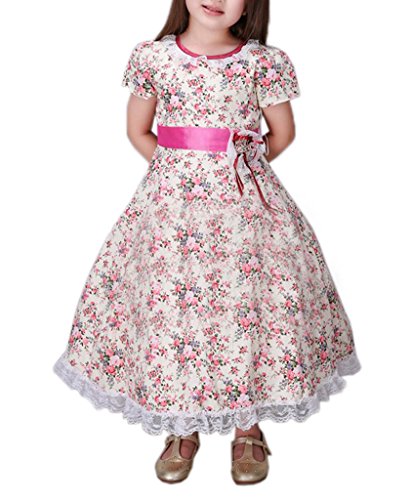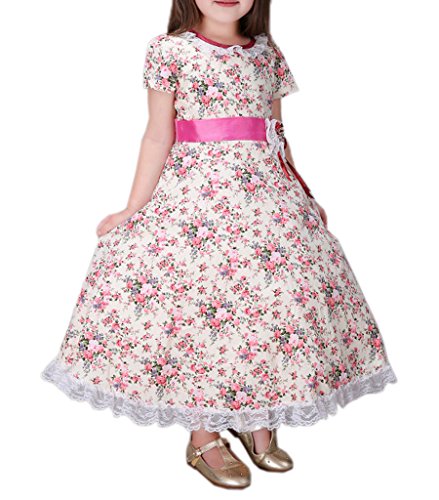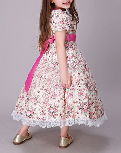 (ウォ2U)Woo2u キッズ 女の子 春夏 子供洋服 ピンク 花柄 レース 半袖 ハーフ丈 姫様 パーティー カジュアル お呼ばれ 三五七 入学式 通勤 ワンピース フォーマルドレス 140