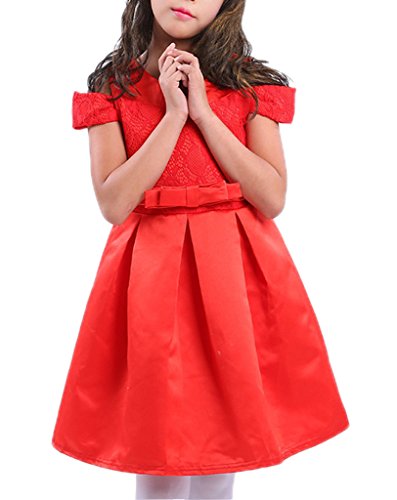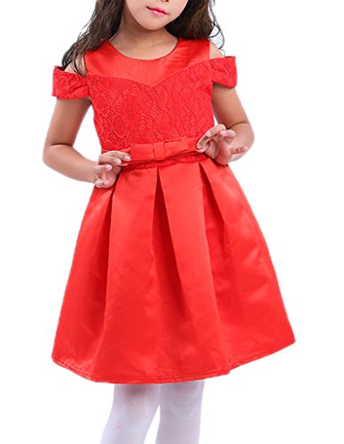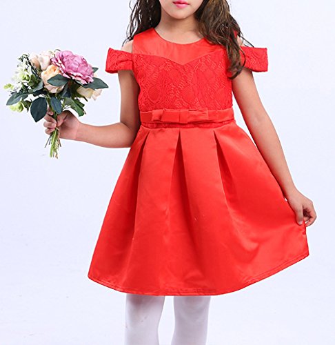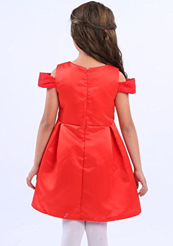 (ウォ2U)Woo2u 子供 女の子 キッズ 春夏 ベアトップ レース 姫様 三五七 通勤 ひざ丈 カジュアル 結婚式 演奏会パーティー ワンピース お呼ばれ フォーマルドレス 赤色 5