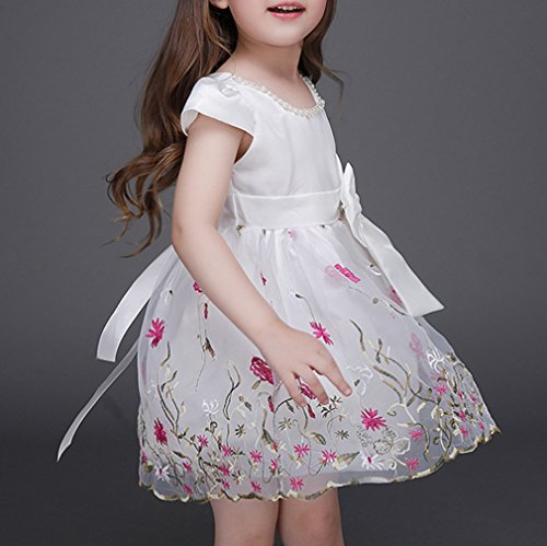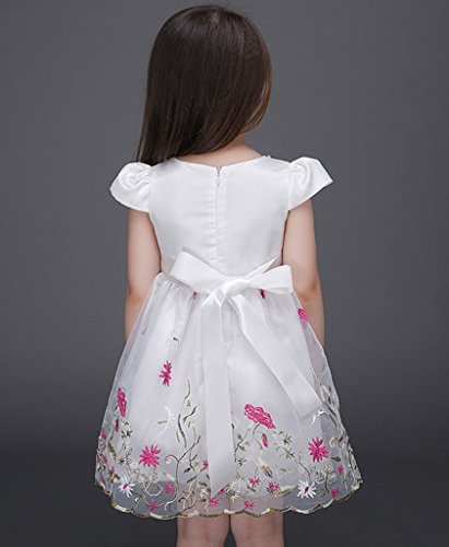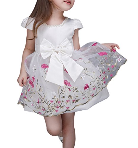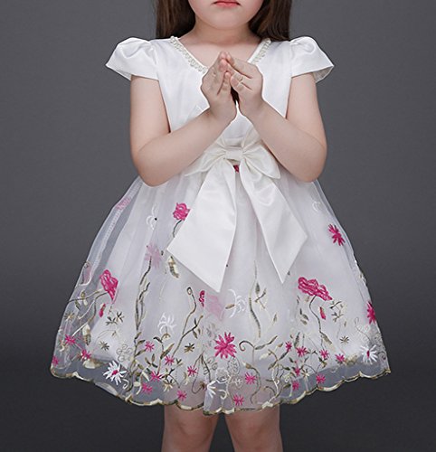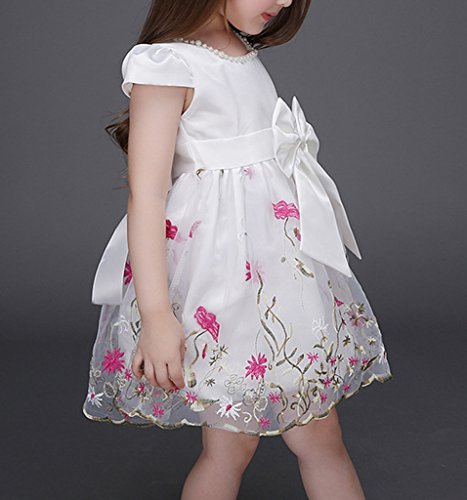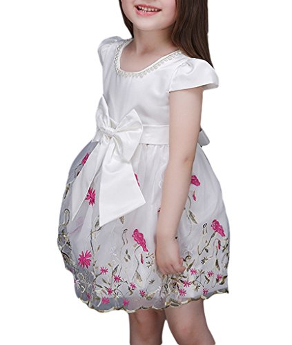 (ウォ2U)Woo2u キッズ ガールズ 女の子 白色 花刺繍 リボン蝶結び Aライン ショート丈 半袖 入園式 結婚式 パーティー お呼ばれ お姫様 ドレス カジュアル チュニック フォーマル ワンピース 100
