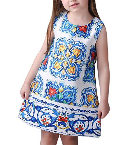 (ウォ2U)Woo2u 女の子 ガールズ 春夏 子供洋服 ノースリーブ 花柄 Aライン ひざ丈 お姫様 カジュアル 入園式 パーティー お呼ばれ ドレス フォーマル ワンピース チュニック 130