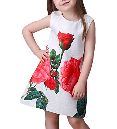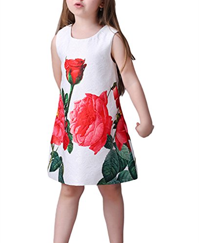 (ウォ2U)Woo2u 春夏 女の子 ガールズ 可愛い ローズ柄 ノースリーブ ショート丈 Aライン フォーマル ワンピース カジュアル 入園式 パーティー チュニック お呼ばれ ドレス 130