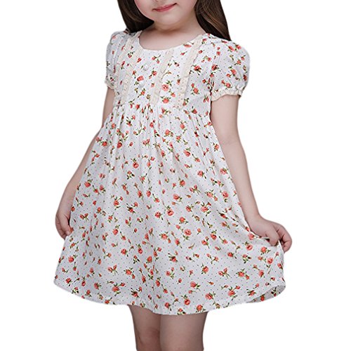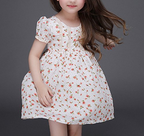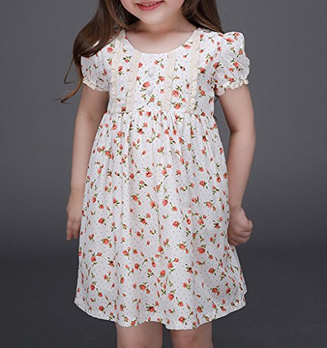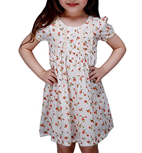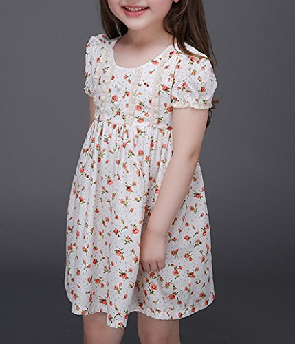 (ウォ2U)Woo2u 春夏 キッズ 女の子 半袖 可愛い 花柄 白色 ひざ丈 子供洋服 誕生会 入園式 子供洋服 お姫様 ドレス パーティー お呼ばれ フォーマル ワンピース カジュアル チュニック 120
