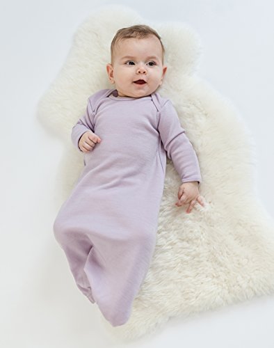 Woolino 赤ちゃん 女の子用 ガウン 0-6ヶ月用 ライラック メリノウール