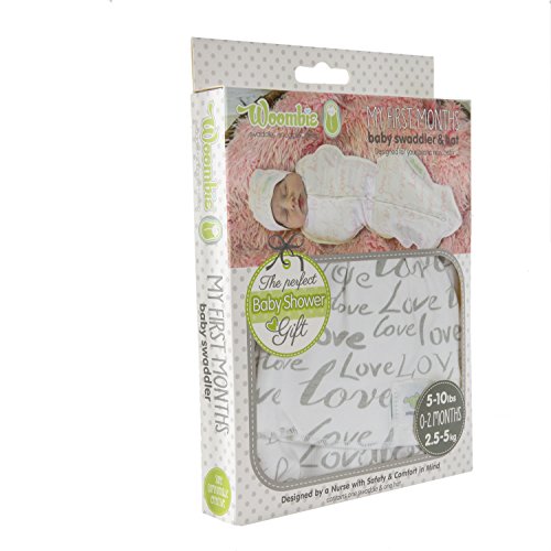 ONE-STEP BABY SWADDLE AND HAT - Swaddling has been proven to help babies sleep better, longer, and safer. The Woombie swaddle has received over 15 awards with its innovative design and has been nominated as Moms Favorite Swaddle for effectiveness and ease of use. Appreciated by moms and little ones alike, this swaddle includes a comfy hat. Designed for babies between 5-10 pounds.;STRETCHY BUT SNUG BABY FIT - The Woombie Original One-Step Baby Swaddle allows natural arm and leg movement during sleep. With special, multi-dimensional stretch fabric, the Woombie snuggles and moves with the baby, recreating a womb-like environment and simulating the feeling of being held, touched, and cuddled.;LIGHTWEIGHT AND BREATHABLE - Our swaddle has a seamless interior for maximum comfort and features a 2-way zipper that allows for quick diaper changes at night.;DESIGNED BY CERTIFIED SPECIALISTS - Designed by a certified Infant Care Specialist and Nursing team, our swaddles don't unravel like blankets, which can potentially cover airways. Our swaddles are safe, encourage back sleeping, and promote self-soothing by allowing babies to hold and touch the inside of the garment.;PRODUCT SPECIFICATIONS - Package includes (1) Woombie My First Months Baby Swaddle - Gray Love 5-10 lbs, and (1) Woombie My First Months Baby Hate - Gray Love 5-10 lbs.