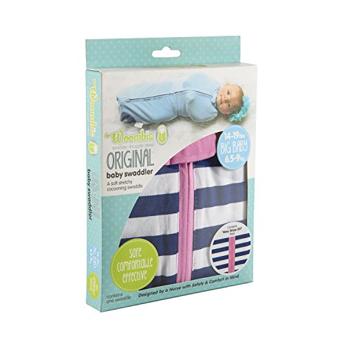 ORIGINAL ONE-STEP BABY SWADDLE - Swaddling has been proven to help babies sleep better, longer, and safer. The Woombie swaddle has received over 15 awards with its innovative design and has been nominated as Mom's Favorite Swaddle for effectiveness and ease of use. Appreciated by moms and little ones alike, this original swaddle is designed for big babies between 14-19 pounds.;STRETCHY BUT SNUG BABY FIT - The Woombie Original One-Step Baby Swaddle allows natural arm and leg movement during sleep. With special, multi-dimensional stretch fabric, the Woombie snuggles and moves with the baby, recreating a womb-like environment and simulating the feeling of being held, touched, and cuddled.;LIGHTWEIGHT AND BREATHABLE - Our swaddle has a seamless interior for maximum comfort and features a 2-way zipper that allows for quick diaper changes at night.;DESIGNED BY CERTIFIED SPECIALISTS - Designed by a certified infant care specialist and nursing team, our swaddles don't unravel like blankets, which can potentially block airways. Our swaddles are safe, encourage back sleeping, and promote self-soothing by allowing babies to hold and touch the inside of the garment.;PRODUCT SPECIFICATIONS - Package includes (1) Woombie Original One-Step Baby Swaddle - Navy Stripe - Big Baby 14-19 lbs. Woombie Sizes: Preemie: 16-17 inches, 3-6 lbs. Newborn: 20-22 inches, 5-13 lbs. Big Baby: 24-26 inches, 14-19 lbs. Mega: 27-29 inches, 20-15 lbs.