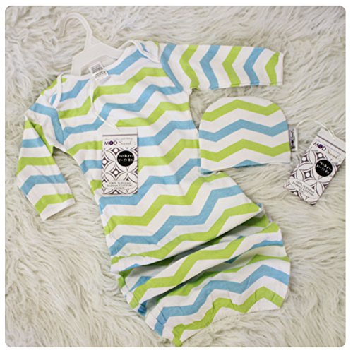 Woombie Indian Cotton Gowns Plus Hat, Aqua/Lime Chevron, 24-30 Pounds by Woombie