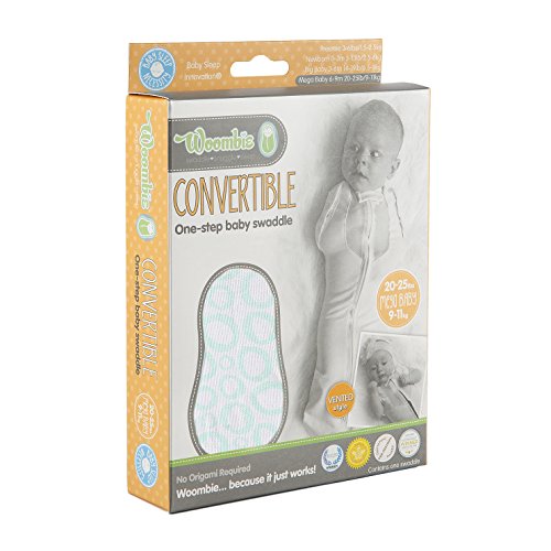 VENTED CONVERTIBLE SWADDLE - Swaddling has been proven to help babies sleep better, longer, and safer. The Woombie swaddle has received over 15 awards for its innovative design, effectiveness, and ease of use. Appreciated by moms and little ones alike, our convertible swaddle adds an arms free option to the original peanut shape, allowing you to use whichever option is more comfortable for your baby! Designed for extra-large babies between 20-25 pounds.;STRETCHY BUT SNUG BABY FIT - The Woombie Vented Convertible Baby Swaddle allows comfortable natural arm and leg movement during sleep and can convert into a single leg onesie with an open-arm option. With special, multi-dimensional stretch fabric, the Woombie snuggles and moves with the baby, recreating a womb-like environment and simulating the feeling of being held, touched, and cuddled.;LIGHTWEIGHT AND BREATHABLE - Our swaddle has a seamless interior for maximum comfort and features a 2-way zipper that allows for quick diaper changes at night. What's more, this model features vented mesh pockets, making it perfect for lighter sleeping.;DESIGNED BY CERTIFIED SPECIALISTS - Designed by a certified infant care specialist and nursing team, our swaddles don't unravel like blankets, which can potentially block airways. Our swaddles are safe, encourage back sleeping, and promote self-soothing by allowing babies to hold and touch the inside of the garment.;PRODUCT SPECIFICATIONS - Package includes (1) Woombie Vented Convertible Baby Swaddle - Mint O's - Mega Baby 20-25 lbs. Woombie Sizes: Preemie: 16-17 inches, 3-6 lbs. Newborn: 20-22 inches, 5-13 lbs. Big Baby: 24-26 inches, 14-19 lbs. Mega: 27-29 inches, 20-25 lbs.
