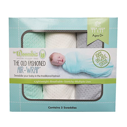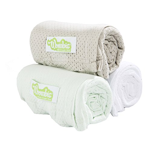 - Woombie 3 Piece Organic Airwrap Vented Blankets, Green/Cream/Gray, 44