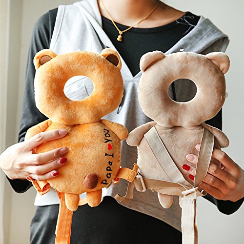 【World L&O】赤ちゃん ベビーヘッドガード マット 通気性抜群 快適 メッシュ素材 可愛い 頭保護ガード ベビーガード 男の子 女の子 キッズ 後頭部 保護クッション 保護枕 乳幼児~幼児 子供用 衝撃 転倒 ごっつん ケガ 怪我防止 安全 対策 グッズ セーフティー ヘルメット リュック 柔らか素材 新生児 6ヶ月~ 出産祝い ギフト プレゼント 贈り物に! (【タイプ14 くまさん ココアブラウン ふわふわ布地】)