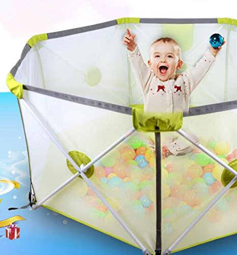 X-Jang ベビーサークル 育児、赤ちゃん フェンス 、折りたたみ 収納 、高さ68cm 安全、六角形 倒れにくい、使いたい大きさに変化できる。 6ヶ月~3歳半対象、誕生日プレゼント (緑)