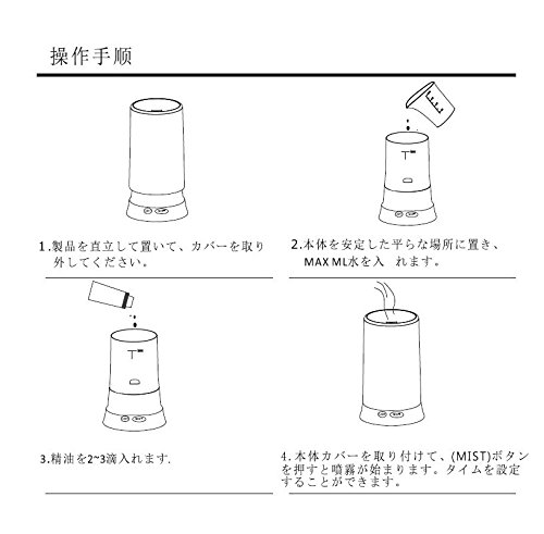 - 【アロマディフューザー】:ロマンチックな色と静か環境の組み合わせ、ストレスを解消できる。滑らかなエッセンシャルオイル(含めない)のスチームを噴出し、生活を楽しむことができる