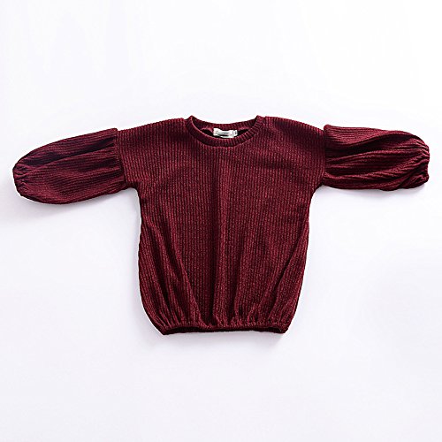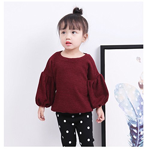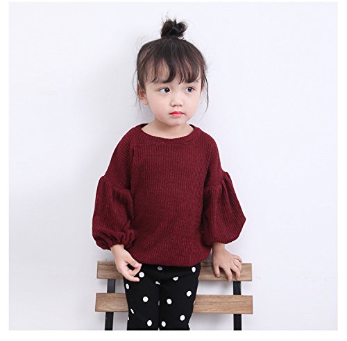 X-LAN 子供服 ベビー服 キッズ ニットセーター 無地 カジュアル シンプル ランタン袖 秋冬 カジュアル ファッション 遊び お出かけ プレゼント 女の子 ワインレッド (100)