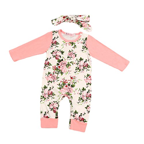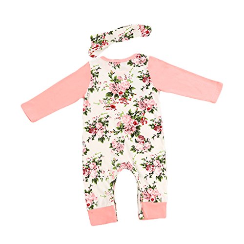 cm-trading 新生児 カバーオール ロンパース ベビー 長袖 肌着 女の子 フォーマル 洋服 花柄 総柄 可愛い 人気 赤ちゃん 服 ヘッドバンド付く クリスマス ルームウェア お出かけ 出産祝い プレゼント 70 80 90 100