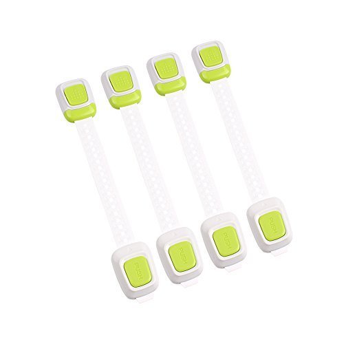 xiaohawangベビー安全キャビネットロック子Proof引き出し、アプライアンス、トイレシート、食器棚、冷蔵庫、オーブンまたはドリルツール調節可能なストラップとラッチロック、簡単なインストール、なく、4パックグリーン