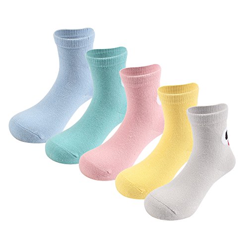 XIAOHAWANG女の子 靴下 フォーマル 綿 柔らかい 可愛い目付き 抗菌防臭 吸汗吸湿 通気性抜群 5足組 (9-12歳, スタイル3)