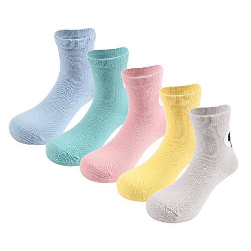 XIAOHAWANG女の子 靴下 フォーマル 綿 柔らかい 可愛い目付き 抗菌防臭 吸汗吸湿 通気性抜群 5足組 (6-8歳, スタイル3)