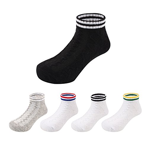 XIAOHAWANG赤ちゃん靴下 ベビーソックス オーガニックコットン キッズソックス ショートソックス スポーツソックス コットン 女の子 男の子 フォーマル 黒 白 5足組 春夏 (2-4歳)