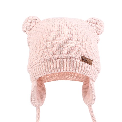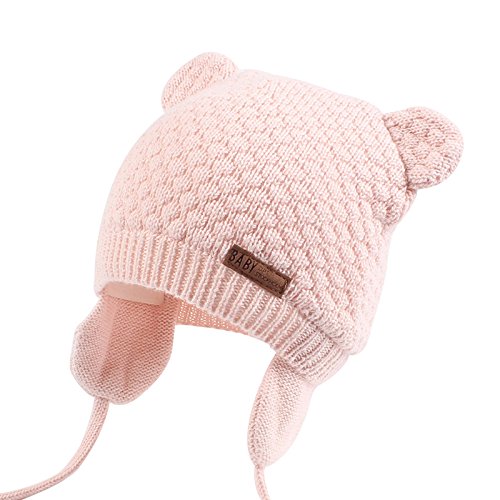 XIAOHAWANGベビーニット帽 赤ちゃん 女の子 男の子 耳保護付き 綿 無地 柔らかい 暖かい かわいい 防風・防寒・保温 春 秋 冬 (7-15ヶ月, ピンク)