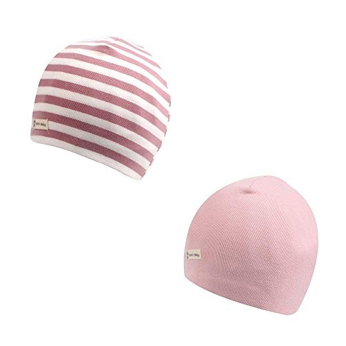 XIAOHAWANG新生児ベビー 帽子 冬 秋 春 男の子 女の子 ニット ローガニックコットン 無地 やわらかい 肌さわりよく 防寒 防風 オールシーズン 出産祝い 2点セット(7ヶ月-3歳(頭囲45-50cm), ピンクしま+ピンク)