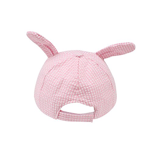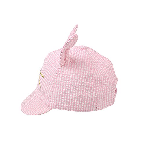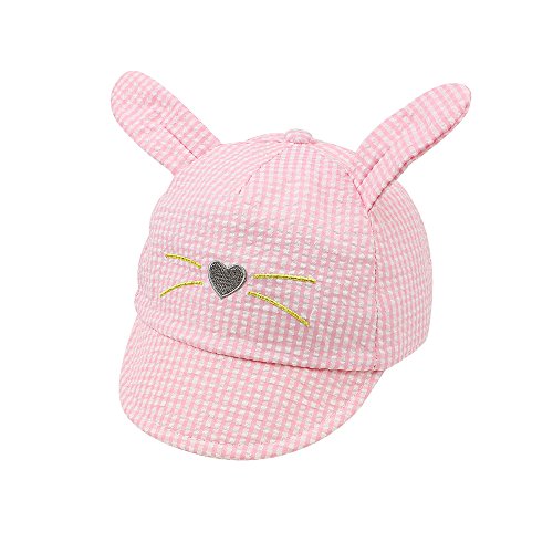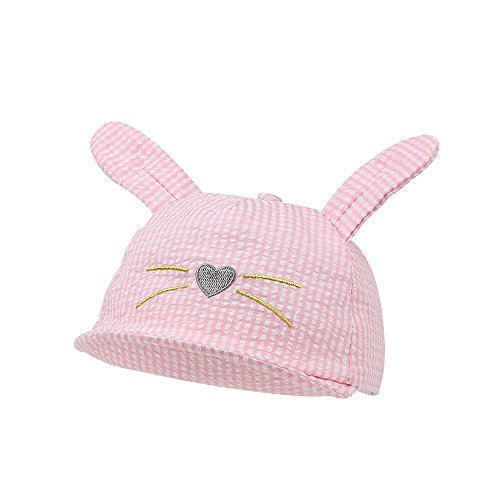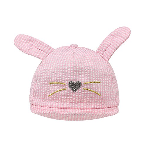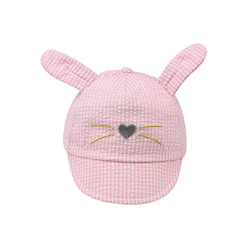 XIAOHAWANGベビー帽子 耳当て 猫刺繍ハット かわいい つば付き サイズ調整可能 日よけ帽子 キャスケット 8-36ヶ月赤ちゃん帽子 おでかけ用 (ピンク, 6-24ヶ月)