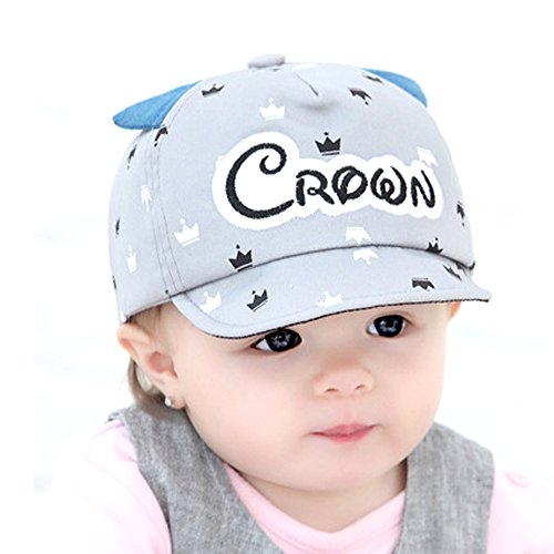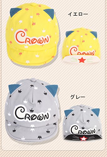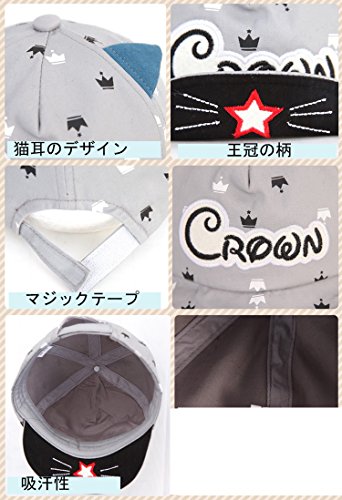 ベビー 帽子 子供用 赤ちゃん 猫 耳 かわいい 男の子 女の子 紫外線対策 UVカット コットン ハット キッズ用品 星 王冠柄 サイズ調整可能 (グレー)