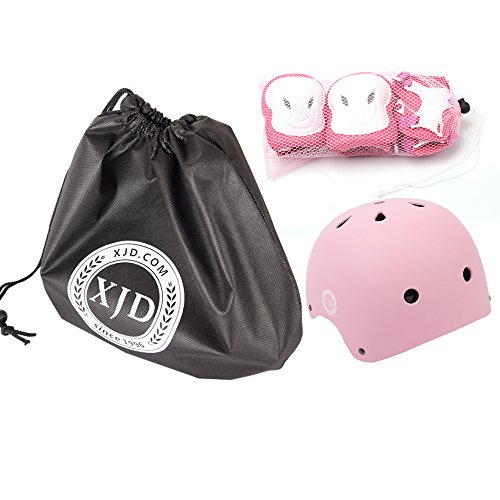 XJD 自転車 ヘルメット こども用 キッズプロテクターセット S:48~54cm 調節可能 超軽量 高剛性 通気性 高品質 自転車 サイクリング 保護用 巾着袋付き(ピンク)