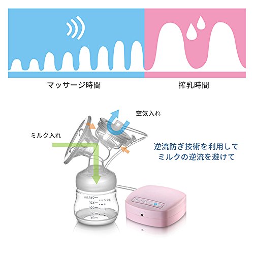 - 【マッサージ&搾乳】搾乳の始めにおっぱいをやさしく刺激し、マッサージモードからどんどん搾乳モードに変換します。