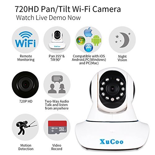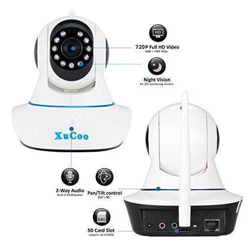 Security Camera Wifi Wireless IP Camera Baby Monitor 720P HD Pan Tilt (Day/Night Vision,2 Way Audio,SD Card Slot, Alarm)-XUCOO [並行輸入品]