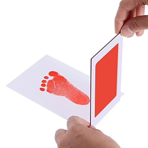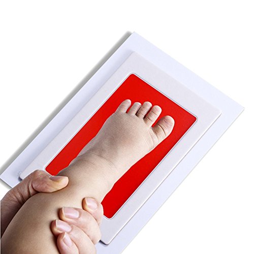 赤ちゃん 手形 足形キット インクタッチなし ベビーフレーム記念品 手足型 出産祝い 男女通用 新生児 写真立て 1枚インクパッド+ 2枚のインプリントカード(レッド)