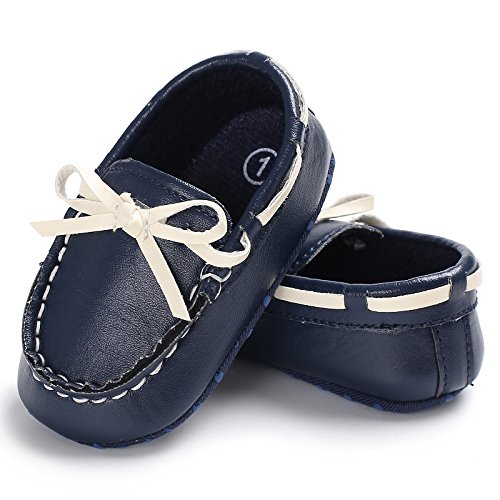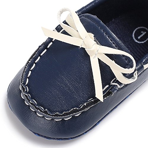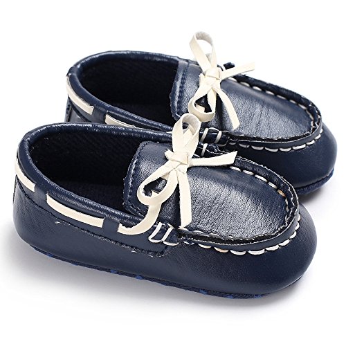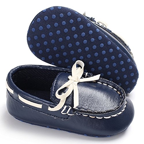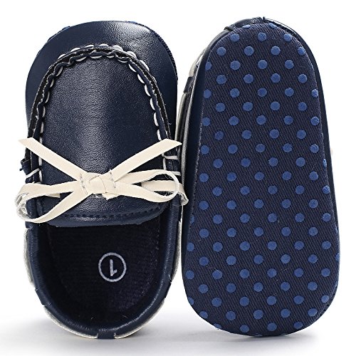 SIEGES ベビー ファーストシューズ モカシンシューズ 赤ちゃん靴 リボン 滑り止め ソフト靴底 歩行練習用 紺 11cm