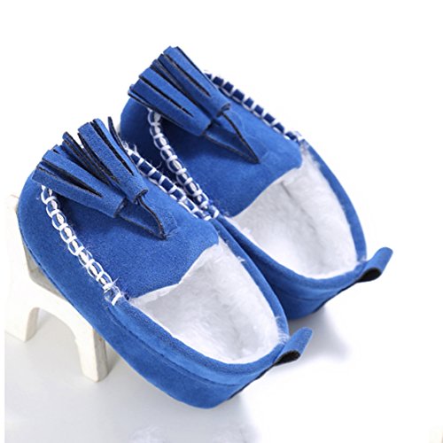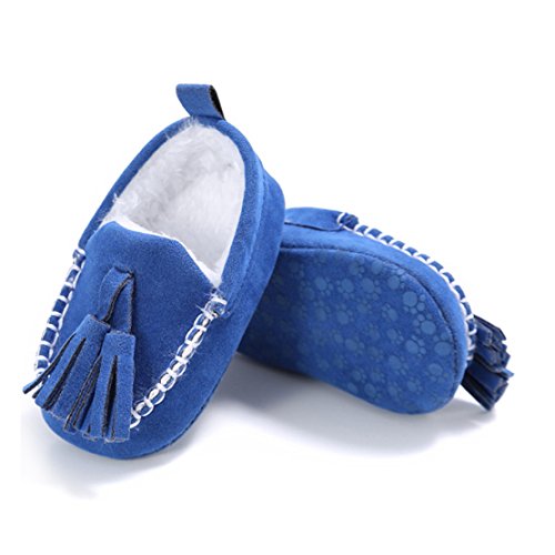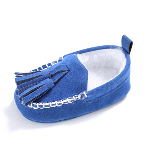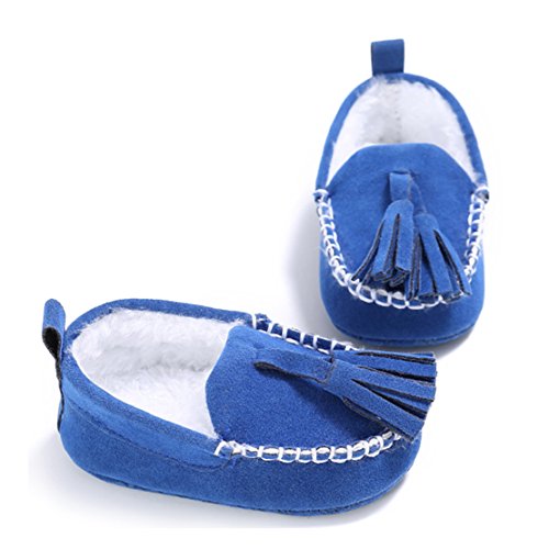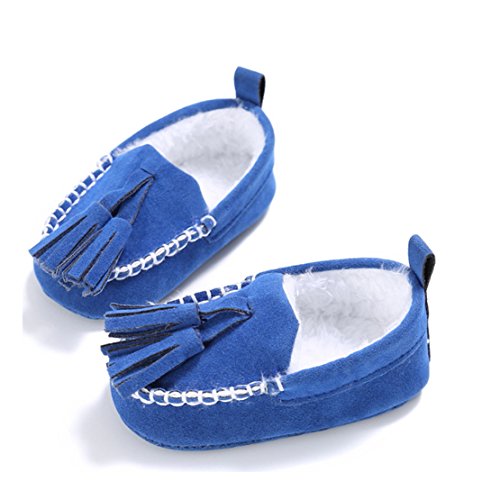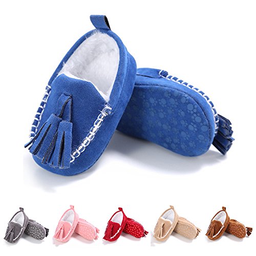 SIEGES ベビー ファーストシューズ モカシンシューズ 赤ちゃん靴 ふさ飾り ふわふわ 防寒 歩行練習用 ソフト靴底 出産祝い ブルー 13cm