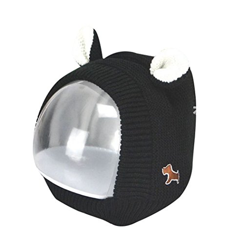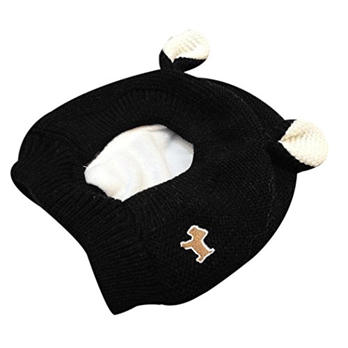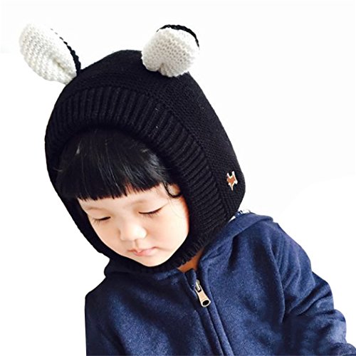 SIEGES キッズ帽子 ニット帽 イヌみみが付き 可愛い 防寒 冬 子供 女の子 男の子 (ブラック)
