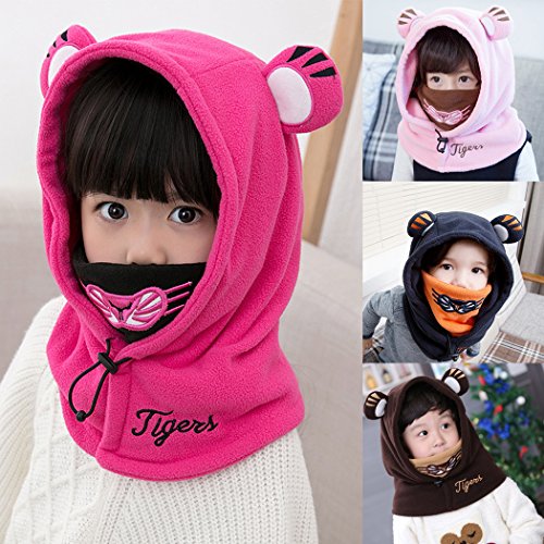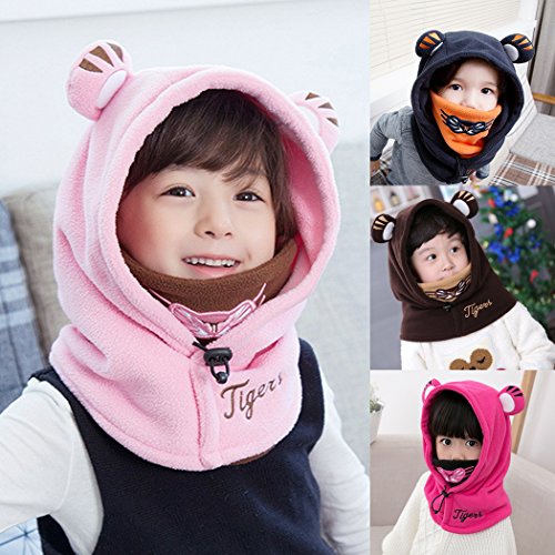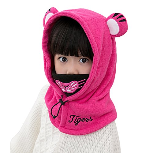 SIEGES キッズ帽子 ニット帽 イヌみみが付き キャップ 可愛い 防寒 冬 子供 女の子 男の子 (L, バラ色)