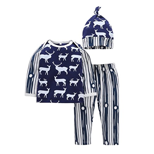 SIEGES ベビー服 赤ちゃん ロンパース パンツ カバーオール ボディスーツ 新生児服 小鹿柄 3セット 男の子 (80cm)