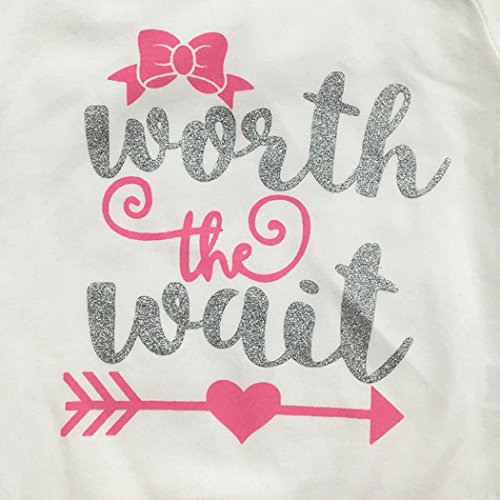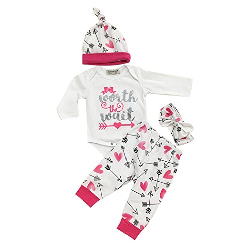 SIEGES ベビー服 赤ちゃん フード付き ロンパース パンツ カバーオール 新生児服 英字柄 worth the wait プリント 4セット(上着+パンツ+帽子+ヘッドバンド) (70cm)