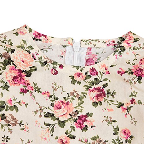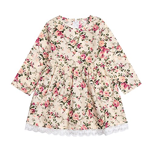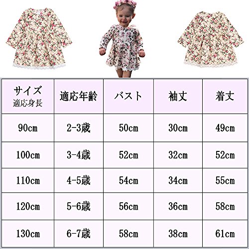 SIEGES 子供服 キッズ ベビー ワンピース チュニック フリル レース 花柄 Aライン 長袖 春 秋 (100cm)