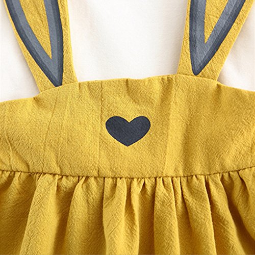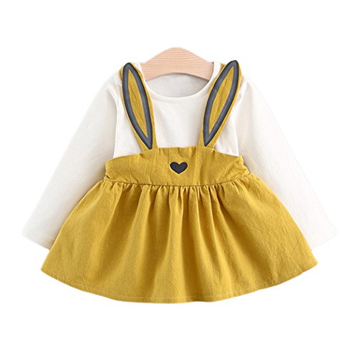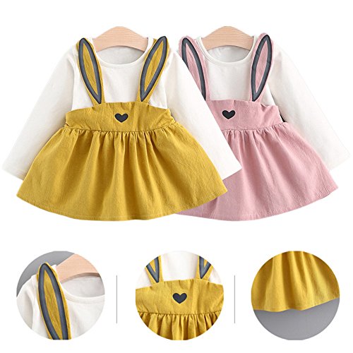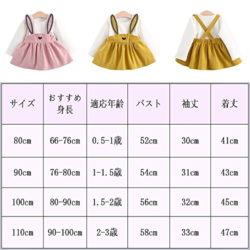 SIEGES ベビーワンピース 子供服 チュニック チュールスカート ウサギ耳 可愛い 長袖 (110cm, イエロー)