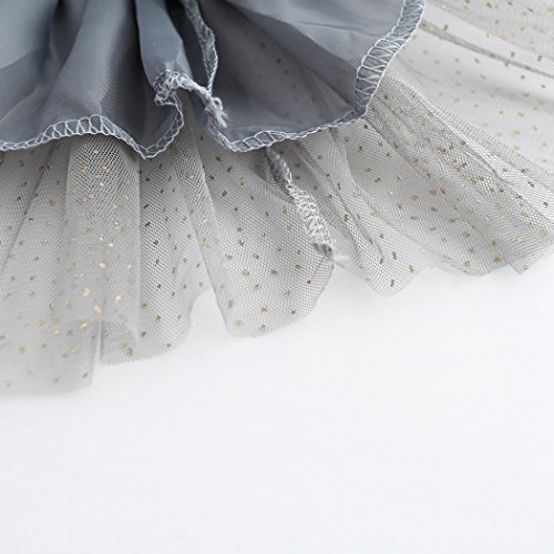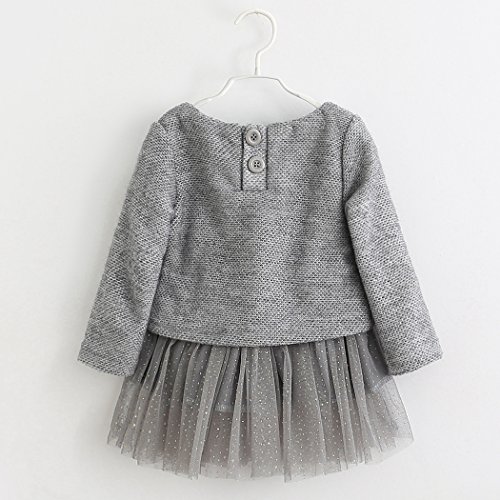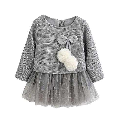 SIEGES ベビーワンピース 子供服 チュニック チュールスカート ボンボン付け 可愛い 長袖 厚手 秋冬 (90cm, グレー)