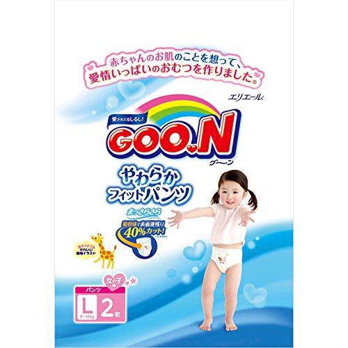 【お試しパック】 グーン やわらかフィットパンツ 女の子用 Lサイズ (9~14kg) 2枚入