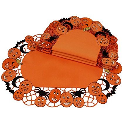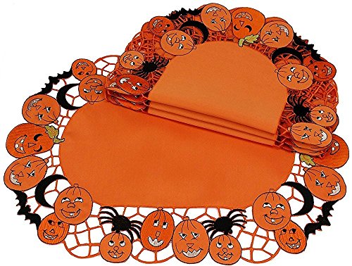 This merry patch of jack-o-lanterns is rendered in embroidery and cutwork on solid easy care Halloween orange polyviscose. A spooky and festive accent to your Halloween gatherings!. As your definitive home d?cor destination, Xia Home Fashions feels that every day should be lived fashionably! Our distinctive designs, rich details, and tempting accessories are sure to endlessly fulfill your home’s finicky fashion sense. Whether you are keeping up with the ever changing colors of the holidays and seasons, looking for a stunning piece to tie your existing interior d?cor together while staying in tune with your individual style, or simply in need of an easy care focal point for an upcoming party or event, Xia Home Fashions has stylish creations that will complete your look and win complements at your next gathering!