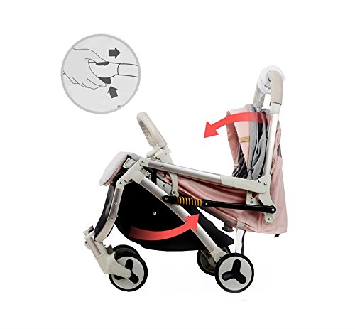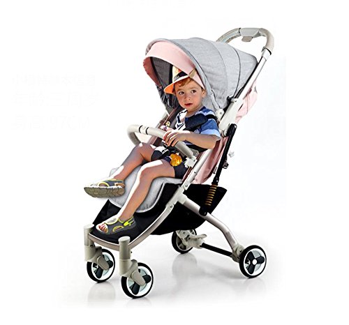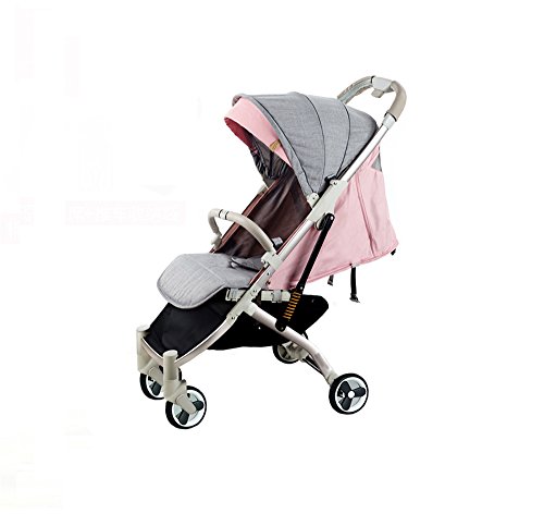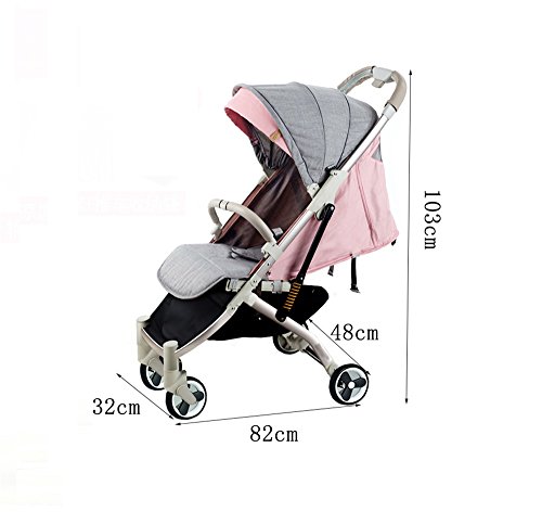 多機能のプッシャーベビーカー軽量折りたたみ四輪車のサンシェード車ショックプルーフフォーシーズンズトラベルエッセンシャル傘車カーボンスチールフレーム(ピンク)