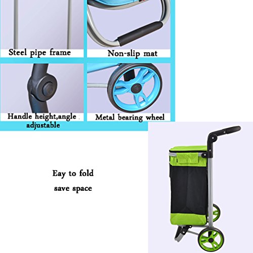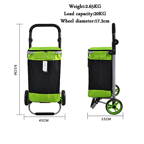 ショッピングトロリー軽量折り畳み式旅行用品トロリーカート2耐久性ホイールモビリティートロリーバッグカートオックスフォード布ショッピングバッグカート大容量40Lグリーン