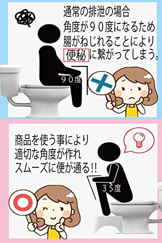 - 排泄に一番いい角度は35°とされています。踏み台を使うことで自然にこの角度が作れ、スムーズな排便が可能となります。