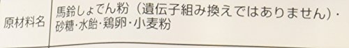 • 原材料:馬鈴薯でん粉(遺伝子組み換えではありません)、砂糖、水あめ、鶏卵、小麦粉